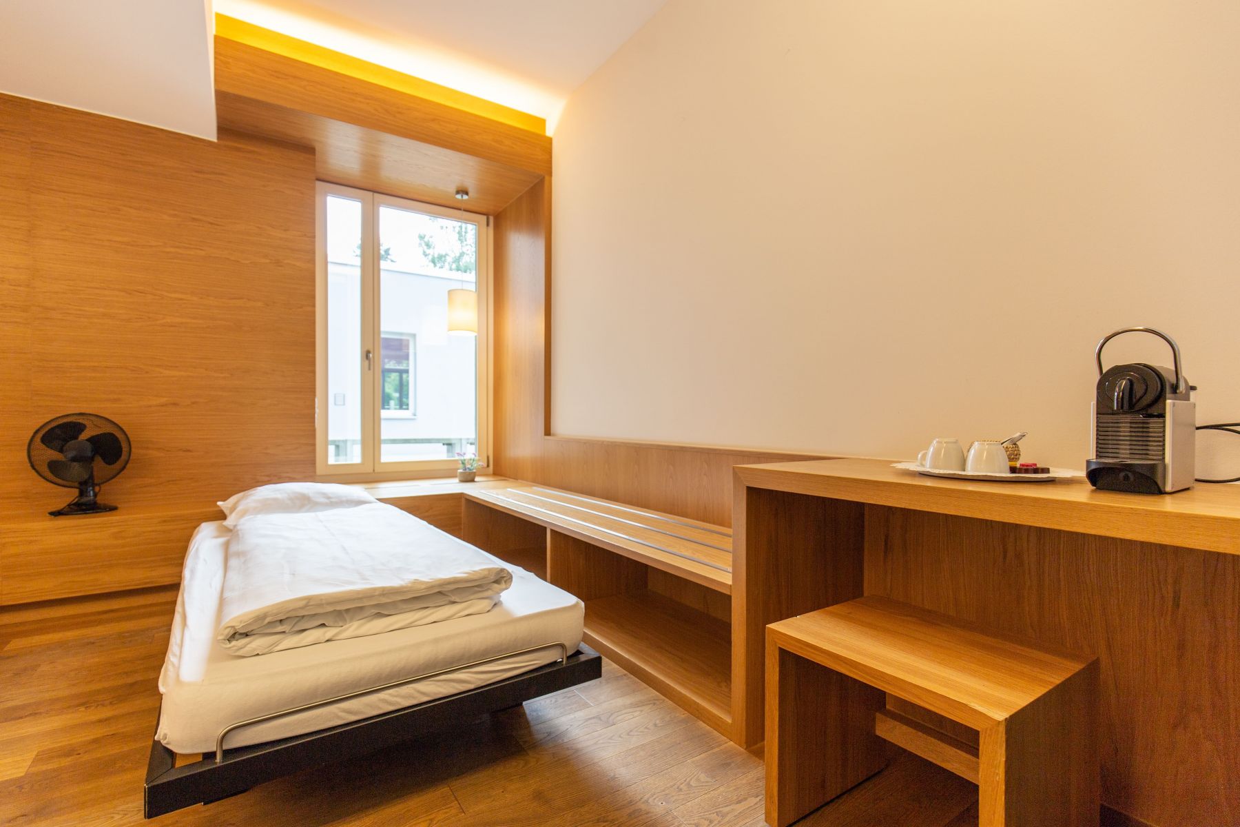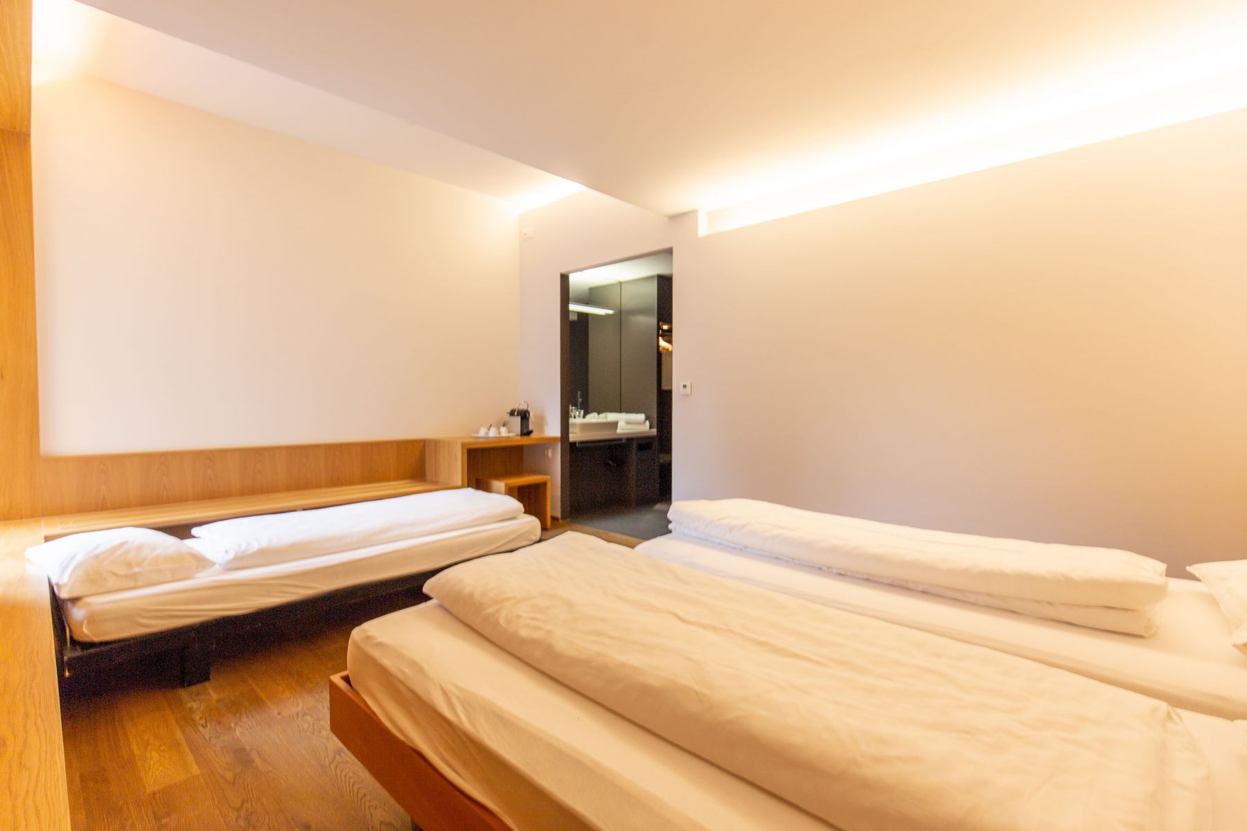 The spacious, modern triple rooms are equipped with high-quality materials and are located near the peaceful inner courtyard. They are wheelchair-accessible and are equipped with a king-size bed and a single bed, a private bathroom, a desk and a Nespresso machine.